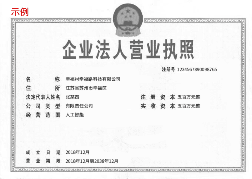 支持新旧营业执照识别,对营业执照关键字段进行识别,包括单位名称、法人、地址、有效期、证件编号、注册号/社会信用代码等